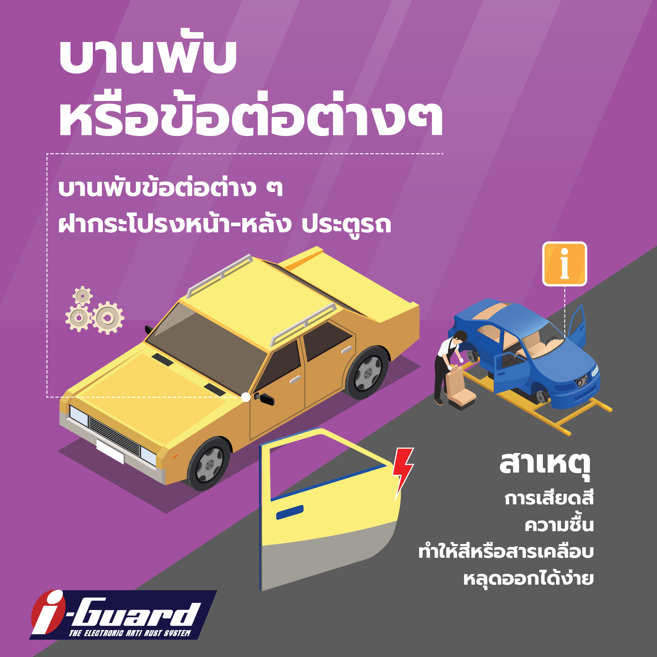 อีกจุดหนึ่งที่หลายคนละเลย ไม่ได้หมั่นสังเกตเป็นประจำนั่นก็คือตามบานพับ หรือข้อต่อต่าง ๆ ที่อยู่บริเวณฝากระโปรงหน้า-หลัง ประตูรถ